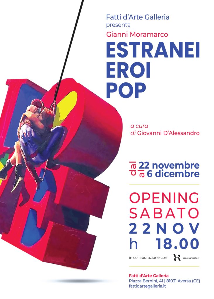 “Estranei eroi pop” (Strange pop heroes) by Gianni Moramarco, curated by Giovanni D’Alessandro. The exhibition opens on Saturday the 22nd of November at the Fatti d’Arte gallery in Aversa.