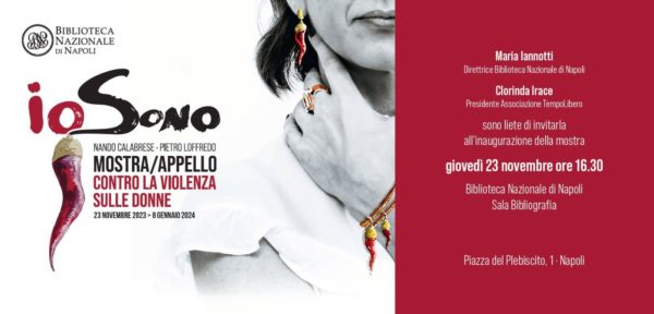 Biblioteca nazionale di Napoli/ “Io sono”: Nando Calabrese e Pietro Loffredo lanciano un grido d’arte contro la violenza sulle donne. Tra foto e segni (scaramantici) di pittura