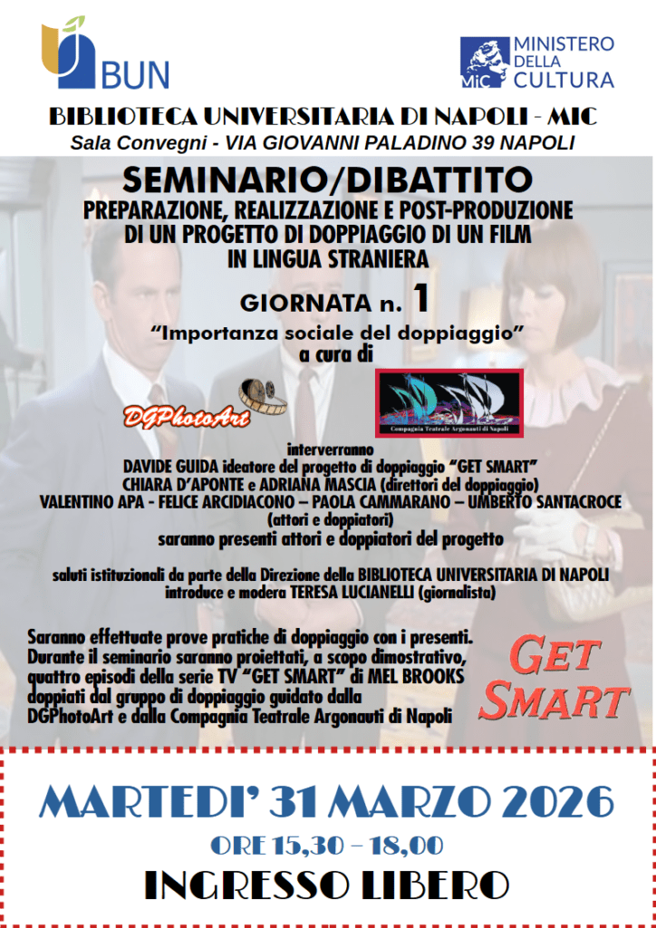 Inclusion also involves the dubbing of foreign-language films. Davide Guida, owner of DGPhotoArt, videomaker, director and screenwriter, launches a series of three talks on the subject tomorrow, Tuesday the 31st of March (the other two on Tuesday the 14th and 28th of April), in collaboration with the Argonauti Theatre Company of Naples, the University Library of Naples and the Ministry of Culture.