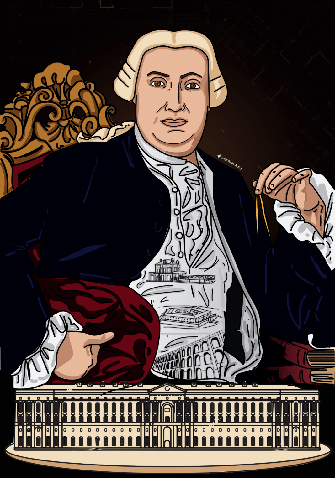 He created it for the Giacomo Leopardi Social Library Museum in Casalnuovo di Napoli to commemorate one of the greatest interpreters of the Rococo and Neoclassical periods, who designed the world-famous Royal Palace of Caserta, built starting in 1752 for Charles of Bourbon. One of the most important and ambitious engineering structures of the 1700s.