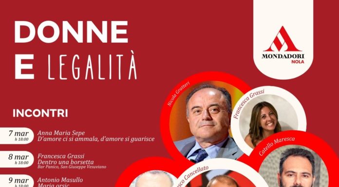 Donne e legalità. Parte domani, giovedì 7 marzo, la rassegna organizzata dallo store Mondadori in piazza Marconi a Nola, diretto dalla giornalista Autilia Napolitano. Fino al 21 di questo mese, otto incontri con giornalisti, magistrati e scrittori, in partnership con le associazioni dell'hinterland nolano. Tra gli ospiti il procuratore Nicola Gratteri (martedì 19 marzo nella...