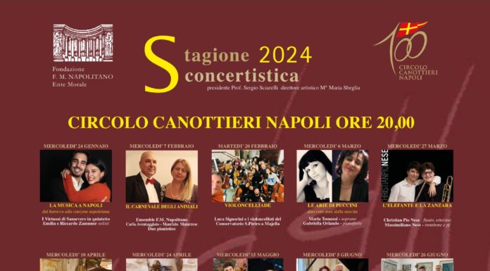 Parte mercoledì 24 gennaio al Circolo Canottieri Napoli la stagione concertistica 2024 della Fondazione F. M. Napolitano, presieduta da Sergio Sciarelli con la direzione artistica della pianista Maria Sbeglia, Da gennaio a dicembre, si offre alla città un programma sempre più compatto, e all’interno di un calendario di eventi articolato in tre sezioni: i 15 concerti previsti al Circolo...