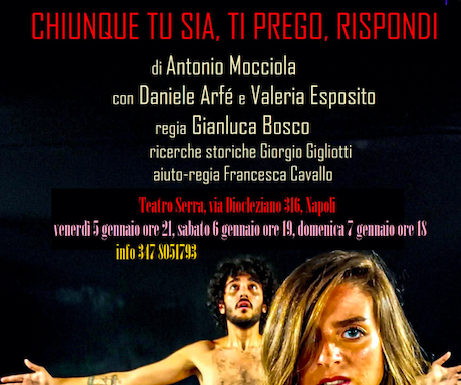 Epifania nel segno di Guantanamo al Teatro Serra di Napoli, con «Chiunque tu sia, ti prego rispondi» di Antonio Mocciola e Diego Galdi in scena a Fuorigrotta, in Via Diocleziano 316, dal 5 al 7 gennaio. Prodotto dall’Associazione Teatrale “Mentite Spoglie” con Daniele Arfè e Valeria Esposito. Regia Gianluca Bosco. Aiuto-regia, Francesca Cavallo. Consulenza storica, Giorgio Gigliotti.Spiega...