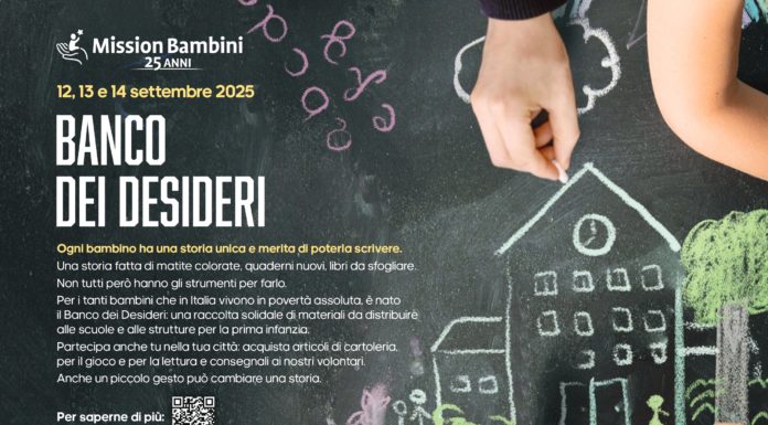 Libri e materiale scolastico per i più fragili. Da venerdì 12 a domenica 14 settembre torna il banco dei desideri, l’iniziativa annuale promossa da Mission Bambini in collaborazione con Feltrinelli Librerie, per donare libri e prodotti di cartoleria agli studenti tra i 3 e i 14 anni che vivono in contesti di difficoltà socio-economica, nelle periferie delle...