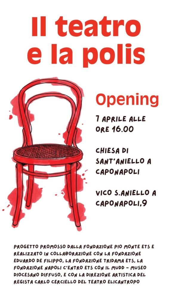 The official presentation to the city will take place on the 7th of April at 4 pm in the church of Sant’Aniello in Caponapoli. The initiative will be presented and explained by Luigi Pietro Rocco di Torrepadula, President of the Fondazione Pio Monte ETS, and Carlo Cerciello, director and artistic director of the Teatro Elicantropo. Also speaking will be the initiative’s partners: Vincenzo Porzio, Director of the Fondazione Napoli C’entro ETS and the MUDD – Museo Diocesano Diffuso; Francesco Somma, Director of the Fondazione Eduardo De Filippo; and Carmela Bruna Trimarco, President of the Fondazione Tridama ETS.