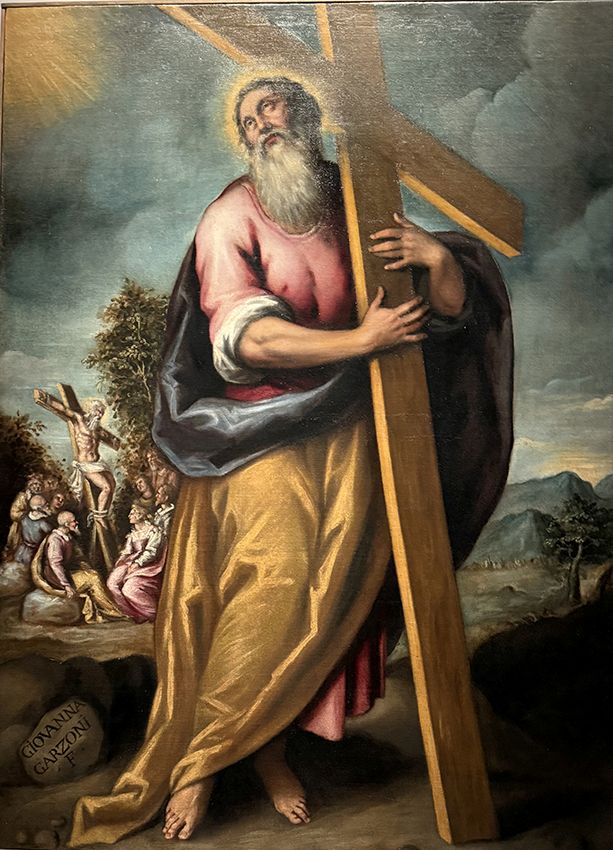 Una miniatrice tra scienza e meraviglia. Giovanna Garzoni, nata probabilmente nel 1600 ad Ascoli Piceno da una famiglia di origine veneziana, soggiornò a Napoli tra il 1630 e il 1631, chiamata proprio dal duca d’Alcalá. In mostra è oggi possibile ammirare il suo Sant’Andrea, parte di una serie di dodici apostoli realizzata intorno al 1620 per la chiesa del Salvatore, al centro dell’Ospedale degli Incurabili, dedicato ai malati di sifilide, ma anche all’educazione delle giovani indigenti. L’opera, una delle prime attività documentate della pittrice, realizzata quando non aveva ancora venti anni, rivela una tecnica in evoluzione: assenza di disegno preparatorio, una stesura iniziale sommaria e una successiva rifinitura più esperta, evidente soprattutto nel mantello giallo, dove pennellate dense suggeriscono un intervento finale di mano più matura.