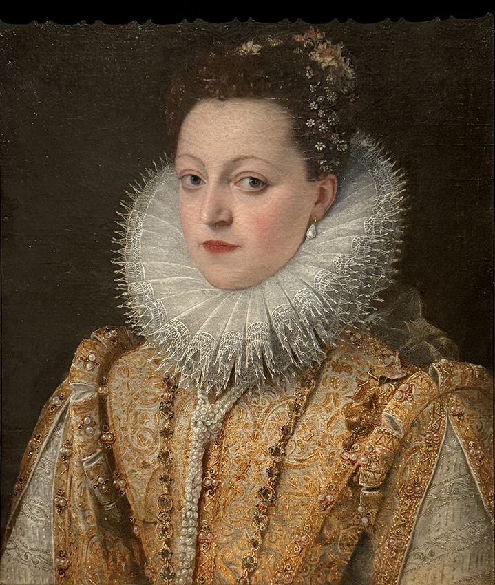 Una principessa tra Mantova e Napoli. Durante la permanenza napoletana dell’Infanta, tra le dame che la affiancarono spicca la figura della principessa di Stigliano Isabella Gonzaga, ritratta in un celebre dipinto attribuito a Frans Pourbus il Giovane, giunto in Italia nel 1600 come ritrattista di corte di Vincenzo I Gonzaga. Il duca, affascinato dalla bellezza delle nobildonne napoletane durante il suo soggiorno del 1603, nel 1607 commissionò a Pourbus una serie di ritratti destinati al suo camerino privato a Mantova.