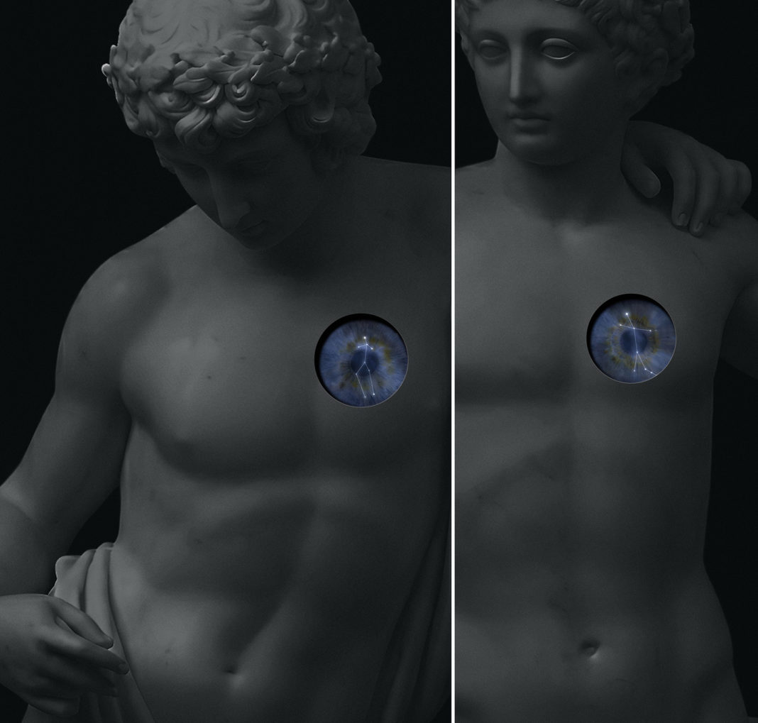 Annalaura di Luggo intervenes, through images and video, on historical models, sculptures and paintings, opening physical and symbolic passages within the works that welcome reworked eyes, capable of narrating and establishing a dialogue with the mythical imagination.