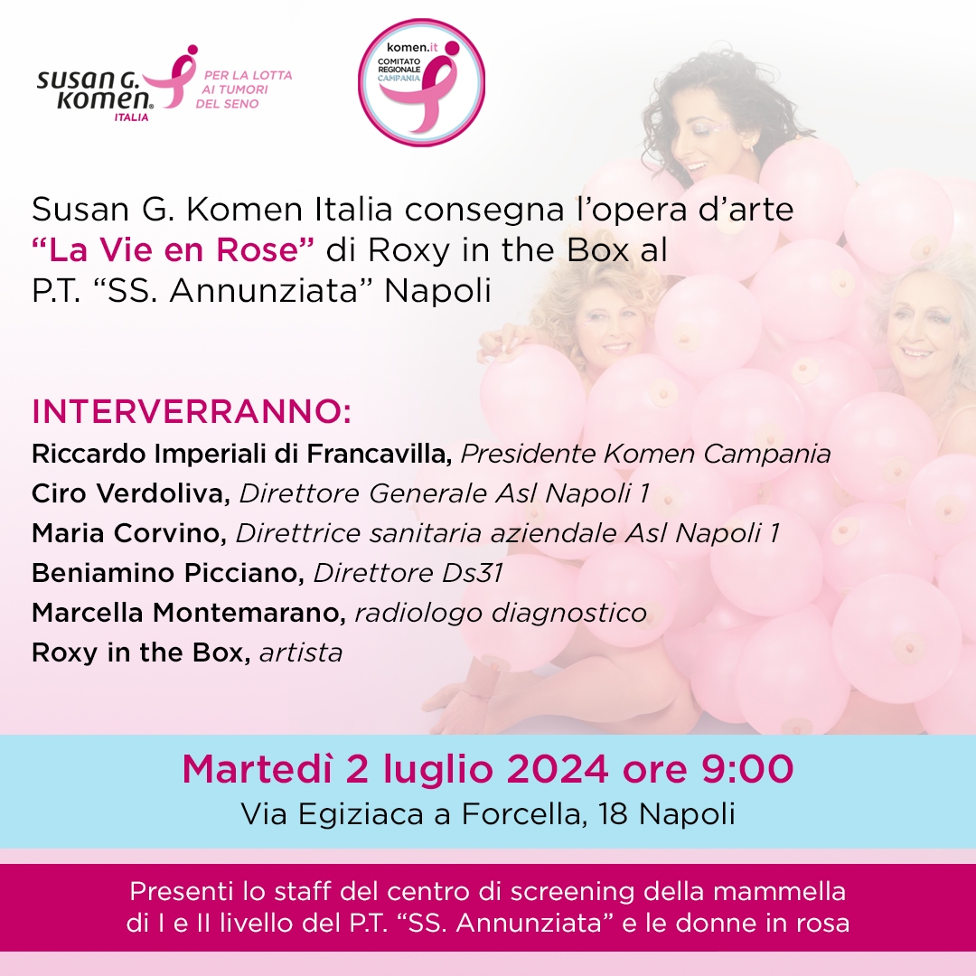 Komen Italia/ Arte e prevenzione: “La Vie en Rose” di Roxy in the Box verrà esposta nel centro screening Santissima Annunziata di Forcella