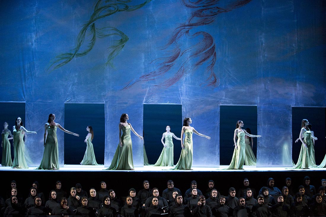 Per la prima volta, all’interno dell’opera di Carl Orff, sono stati eseguiti altri quattro brani tratti dal codice medievale “Cantiones Profanae” usato dal compositore tedesco, orchestrati sulle melodie originali dal direttore spagnolo Jordi Bernàcer che guida dal podio uno spettacolo avvincente che vede protagoniste tutte le forze artistiche del Teatro di San Carlo: l’Orchestra, il Coro il Coro di Voci Bianche e il Corpo di Ballo, con trentadue danzatori del Lirico e sette della Shen Wei Dance Arts. Voci soliste: il soprano Angela Nisi, il controtenore lham Nazarovil e baritono Valdis Jansons.