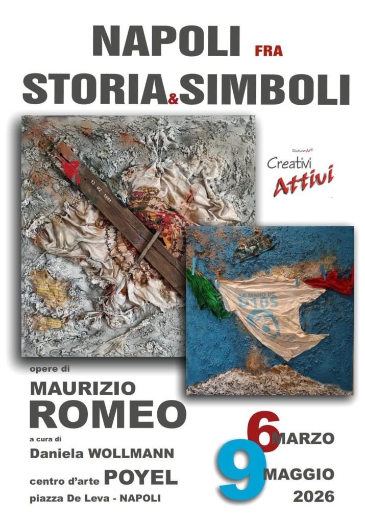 “Napoli fra storia e simboli”. Venerdì 6 marzo, alle 18.30, il Centro d’arte Poyel in Piazza De Leva di Napoli inaugura la personale (foto) di Maurizio Romeo che divide la sua vita tra Ferrara e Napoli. L’esposizione sarà accessibile al pubblico fino al 9 maggio.