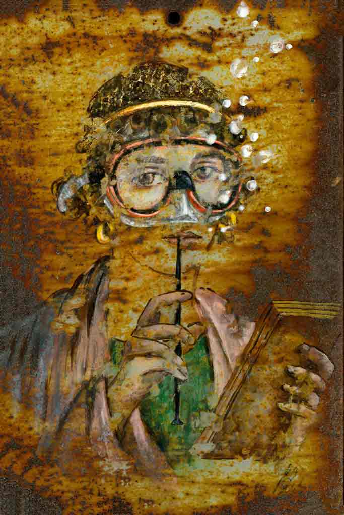 Museo archeologico di Napoli/Blub dipinge l’arte che sa nuotare: tra i personaggi sottomarini, c’è Saffo nella sala del plastico di Pompei