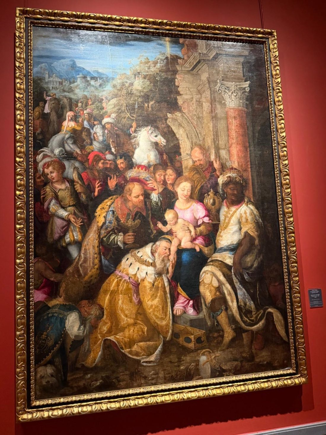 The large painting had been commissioned by Baldassare Noirot, a Flemish merchant, who was entrusted with the Chapel of the Magi in the ancient Church of S. Anna dei Lombardi (1581): in 1798, the collapse of the ceiling rendered it unsafe, and the works were moved to the nearby Santa Maria di Monteoliveto (now Sant’Anna dei Lombardi) in time to avoid the 1805 earthquake, which also destroyed Caravaggio’s ‘Resurrection’.