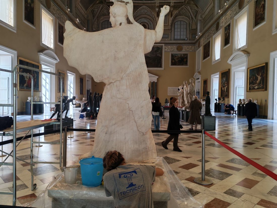 Nella foto di copertina, salone della meridiana con attovità di restauro dei capolavori di Villa dei papiri