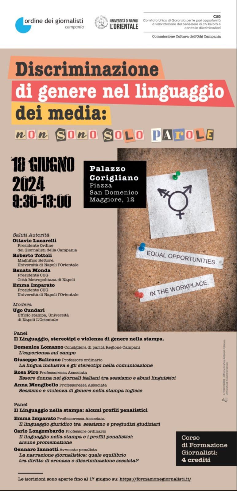 Ordine dei giornalisti della Campania/ Dibattito all’Orientale: discriminazione di genere nei media attraverso le parole. Se il cambiamento parte dal linguaggio