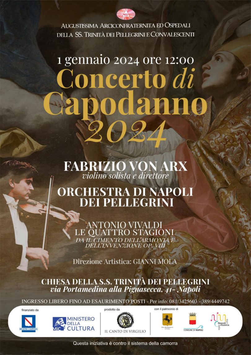 Pignasecca/ Primo gennaio 2024: la neonata Orchestra di Napoli dei Pellegrini debutta con il violinista Bruno von Arx. Un inno alla speranza e alla pace tra i popoli