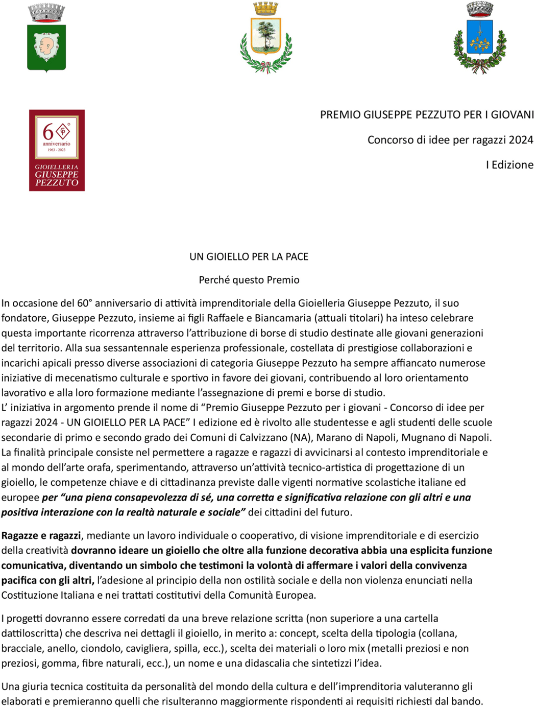 Premio Giuseppe Pezzuto/ Un gioiello per la pace: concorso di idee per le nuove generazioni