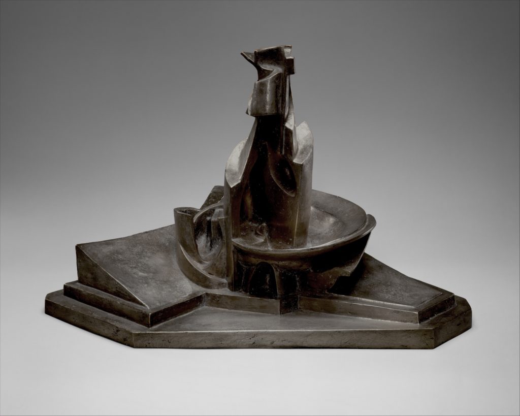 Umberto Boccioni, Sviluppo di una bottiglia nello spazio (post 1912), surmoulage in bronzo patinato, collezione privata Roberto Bilotti Ruggi d’Aragona. In copertina, Mario Schifano, Paesaggio con carbone (1990), olio su tela e carta d’imballaggio, collezione privata gestita pro tempore da Biennale Spaces Venezia