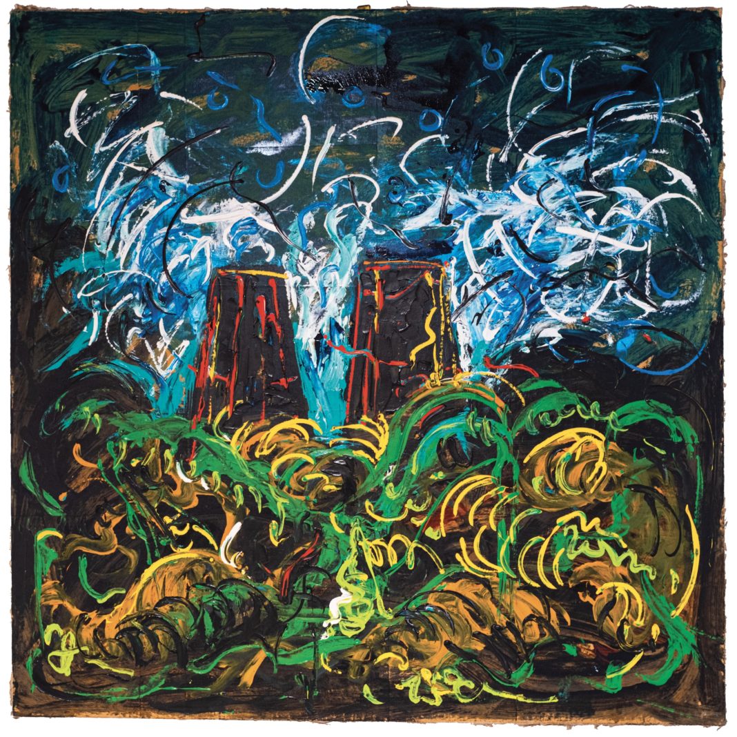 Umberto Boccioni, Sviluppo di una bottiglia nello spazio (post 1912), surmoulage in bronzo patinato, collezione privata Roberto Bilotti Ruggi d’Aragona. In copertina, Mario Schifano, Paesaggio con carbone (1990), olio su tela e carta d’imballaggio, collezione privata gestita pro tempore da Biennale Spaces Venezia