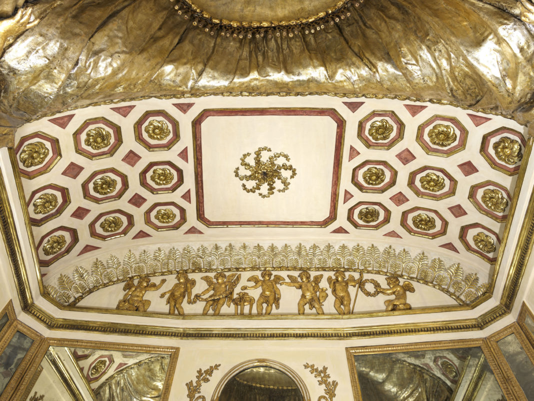 Nel Palco reale infatti, gli interventi di restauro hanno svelato gli antichi colori al di sotto del rosso e dell’oro. Queste porzioni di colorazione celeste resteranno visibili in modo da poter essere visibili.