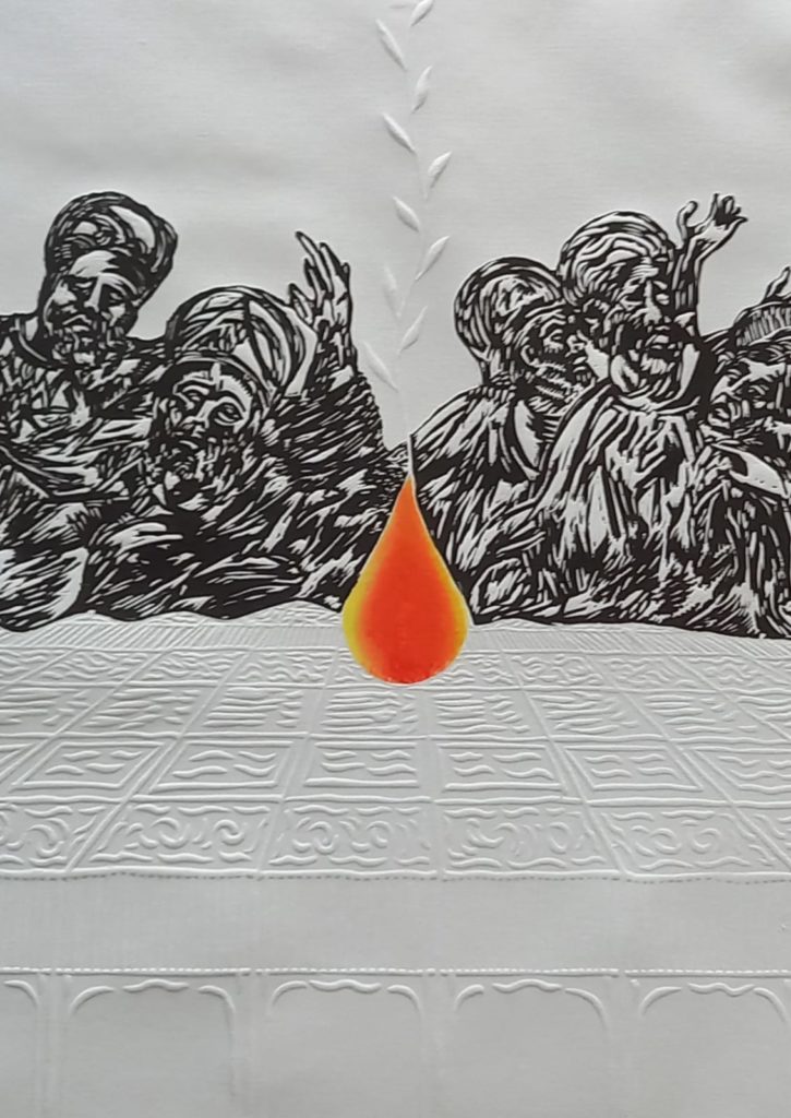 Ciaramella allestisce nella navata settecentesca un cenacolo contemporaneo, dando vita alle sue figure di Gesù e dei dodici apostoli. Così fa rivivere il rito della condivisione del pane, primo nutrimento e simbolo della salvezza dell’uomo.