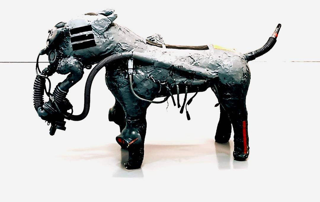 Spiega il gallerista: «Nell’ambito degli studi di scultura, la scelta di unire Lucio Ddt art e Nikla CaveCanem in una mostra, è data dal loro rapporto con il tempo. Lucio Ddt art è proiettato in un futuro tecnologico (foto) dove il rapporto tra uomo e macchina tende a una autotrasformazione, la cui fine è un connubio tossico. Nikla CaveCanem avverte, che come i dinosauri, l’uomo tende alla sua scomparsa. Tutti e due partono dall’Accademia di Napoli».