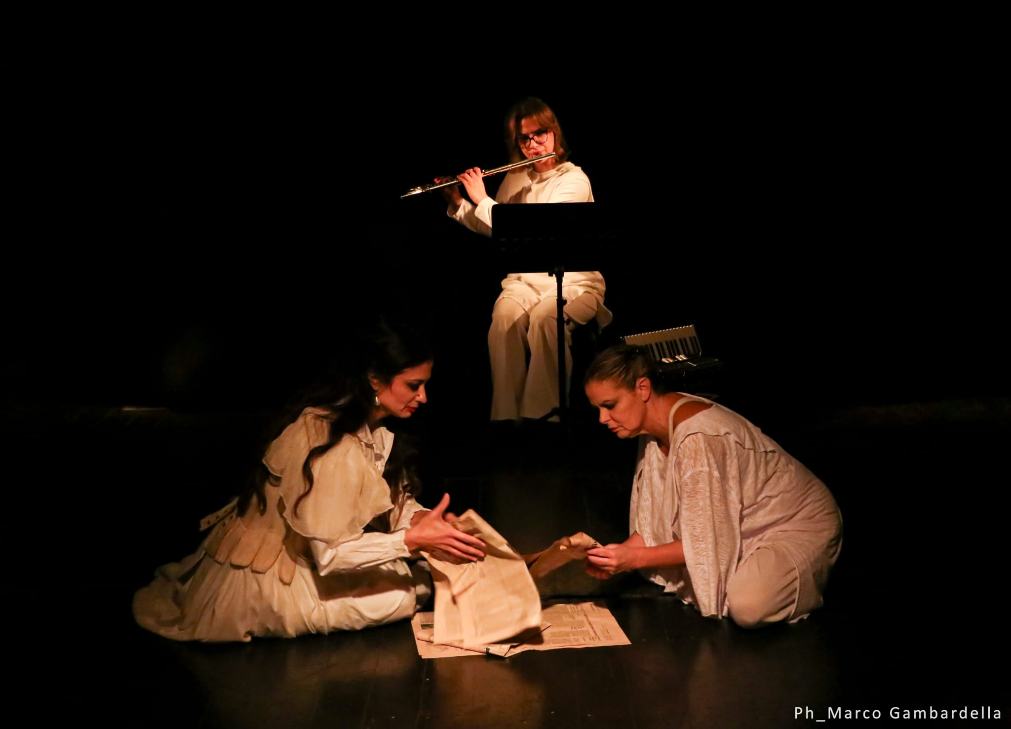 Protagoniste sul palco Anita Mosca, attrice e drammaturga, e Sabrina D’Aguanno, danzatrice e coreografa, accompagnate dalle musiche dal vivo di Martina Primicile Carafa. Un trio multidisciplinare (foto) che ha già debuttato nell’ambito del progetto “Affabulazioni” nel Teatro Serra. Con un linguaggio che intreccia voce, corpo e suono, Sfera Ovale porta in scena un’opera di forte impatto emotivo, coerente con la missione culturale e sociale di “Altri Natali”, rassegna che anche quest’anno illumina Napoli con progetti dedicati alla comunità e ai nuovi immaginari condivisi.